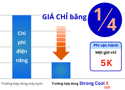 So với điều hòa, máy tiết kiệm năng lượng hơn nhiều, với chi phí vận hành chỉ 27 yên/giờ (điện: 21 yên, nước: 6 yên). Strong Cool X là sản phẩm làm mát tiết kiệm năng lượng và thân thiện với môi trường.